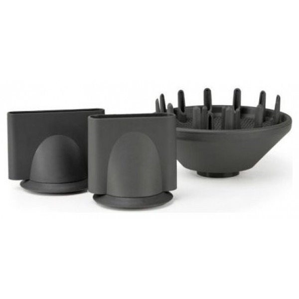 Incluye accesorios magnéticos que se acoplan fácilmente y permiten cambiar de estilo sin complicaciones. El difusor está pensado para aportar volumen y definir ondas o rizos, mientras que los dos concentradores de distinto tamaño ofrecen precisión en el alisado o en el moldeado de zonas específicas.