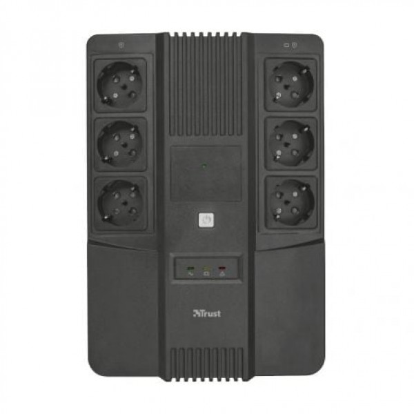 - 3 tomas de corriente para batería y protegidas contra sobretensiones y 3 tomas de corriente de pared protegidas contra sobretensiones para conectar el ordenador, periféricos informáticos, equipos de redes, TV de pantalla plana, productos de domótica o sistemas de alarma