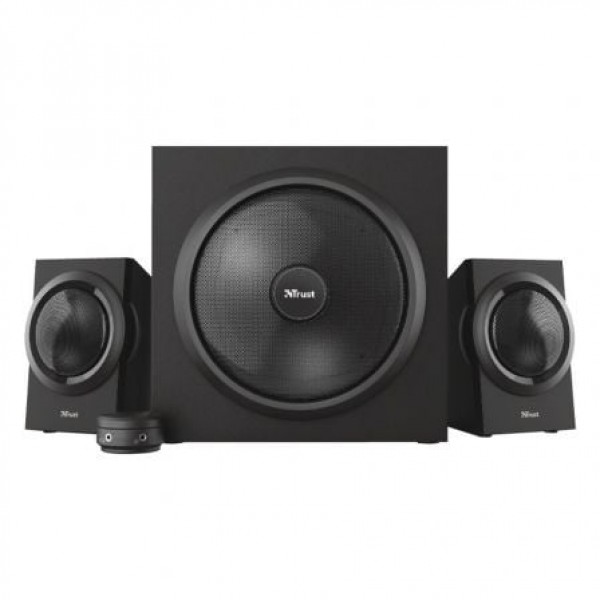 No hay duda de que el juego de altavoces Yuri 2.1 con subwoofer de Trust llama la atención. Su diseño compacto y elegante se presenta en un refinado color negro, con subwoofer de madera. Su tamaño reducido permite que se adapte a cualquier equipo, ya sea en la sala de estar o en el despacho de casa.El poder es tuyo