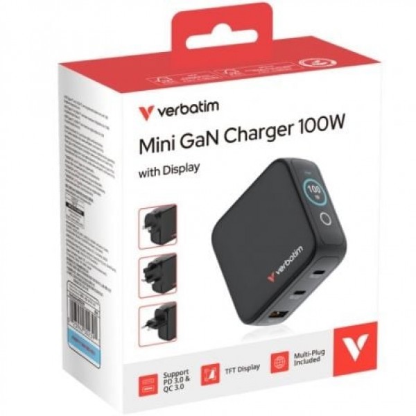 Mini cargador GaN Verbatim de 100 W con pantalla