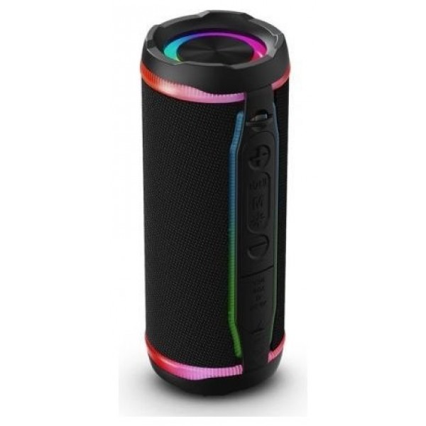 Altavoz Bluetooth con 25 W de potencia y dos grandes diafragmas para un sonido sublime, luces sincronizadas con la música opcionales, 20 horas de duración de la batería, alta resistencia al agua y asa integrada para un transporte cómodo.