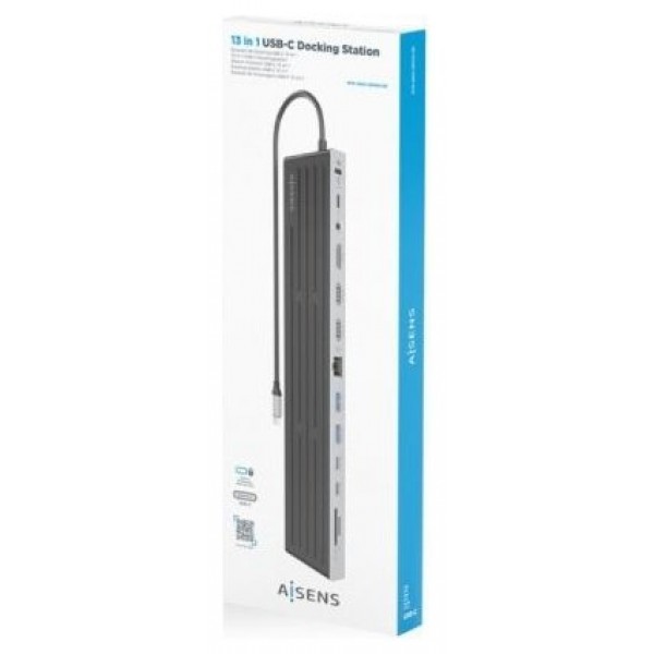 ASUC-13P042-GR – USB-C Dock 13 en 1, USB-C a 2xHDMI, 1xDisplayport, 1xRJ45, 3xUSB-A, 2xUSB-C, 1xUSB-C PD, 1xSD, 1xMicro SD, 1xAudio, 1xRanura Kensington, 30cm