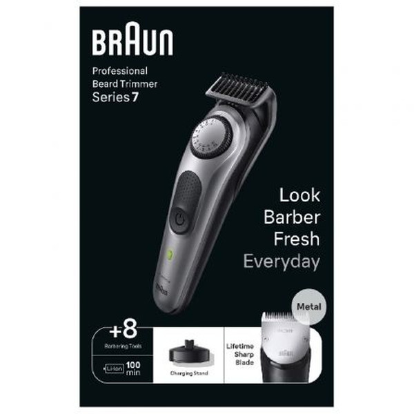 - Parece directo de la barbera todos los días: máxima precisión y 100 % de control gracias a la recortadora de barba profesional Braun 7