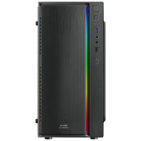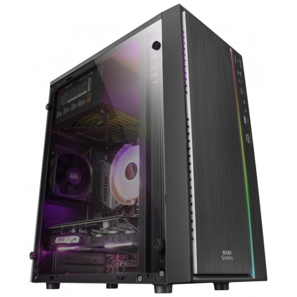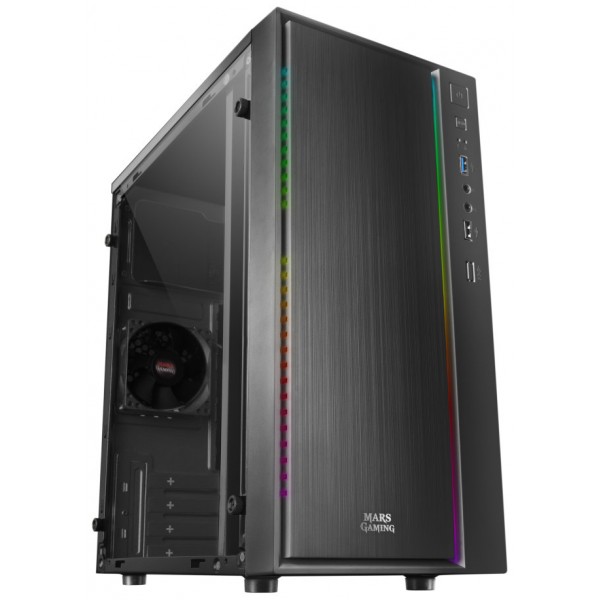 Caja Gaming Minitorre Mars Gaming MC-3TLITECaracterísticas Generales. . Dimensiones: 337×276×342 mm. Peso: 3.5 Kg. Tamaño: Minitorre. Ventana: Ventana lateral y frontal completa de cristal templado en..