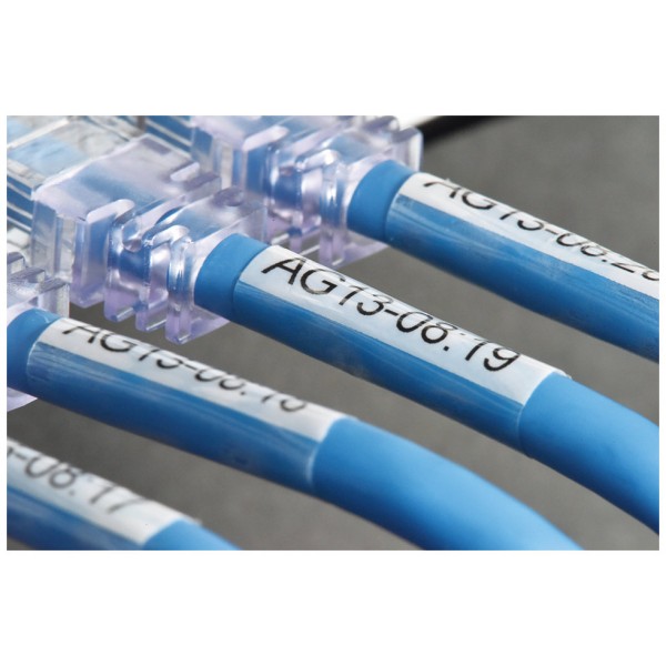 Cinta autolaminada. Texto negro sobre fondo blanco. Ancho: 24 mm. Longitud: 8 m