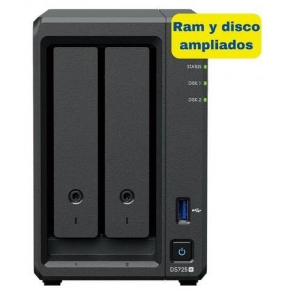 NAS Synology Diskstation DS725+/ 2 Bahías 3.5"- 2.5"/ 16GB DDR4/ Formato TorreDiskStation DS725+ Almacenamiento compacto y capaz para el hogar, pequeñas empresas y edge 2 bahías con expansión Hasta..