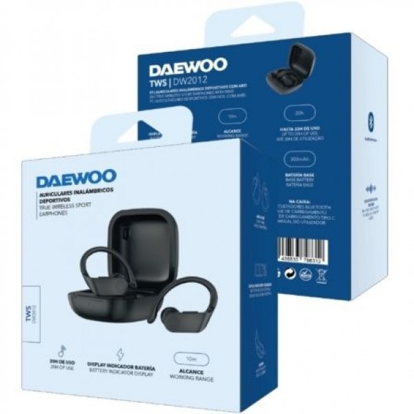 Auriculares Deportivos Bluetooth Daewoo TWS SPORT DW2012 con estuche de carga/ Autonomía 3h/ Negros