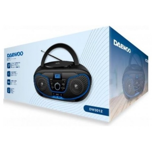 Daewoo DW3012 es una radio CD/FM tipo boombox con conectividad Bluetooth, USB, AUX y salida de auriculares, que combina 2×2 W de potencia en altavoces integrados con ecualizador de 5 modos y pantalla LCD. Funciona a corriente AC o con 4 pilas C (LR14) para uso portátil.