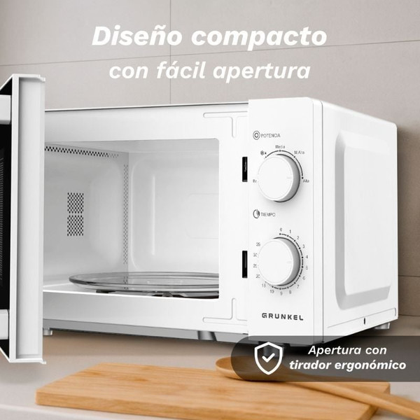 Microondas de GRUNKEL MW-25EASY, 25 L, 850W, 5 niveles, descongelar, temporizador 35 min, bandeja cristal, apertura con tirador.