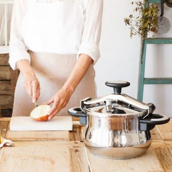 Está fabricada en acero inoxidable 18/10 muy resistente al desgaste, con fondo difusor que consigue un reparto homogéneo del calor, siendo apta para todo tipo de cocinas, incluida la inducción.
