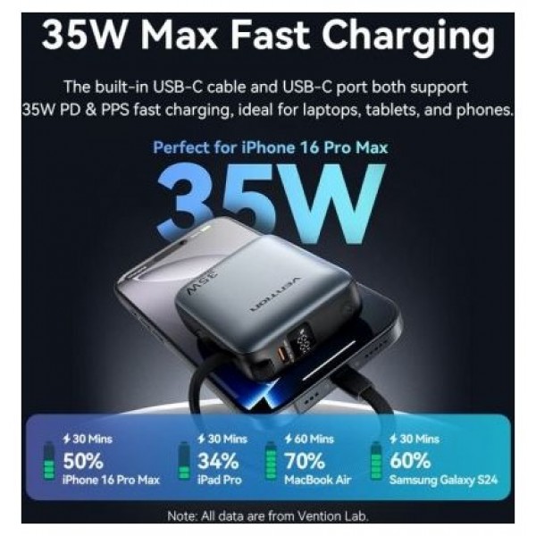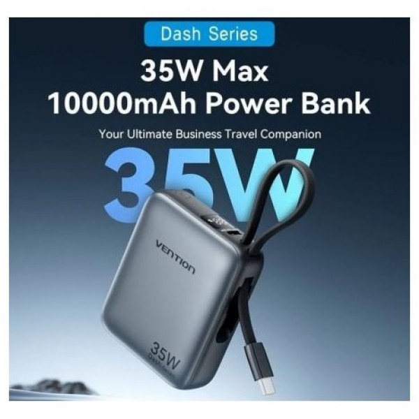 Powerbank 10000mAh Vention FHEH0/ 35W/ Gris/ Incluye Cable USB Tipo-CVention 10000mAh Power Bank 35W Capacidad de 10000 mAh Compacto y portátil Carga rápida PD y PPS de 35 W Cable USB-C integrado para..