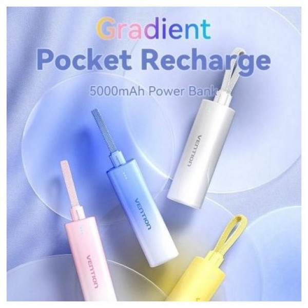 - Mejore su experiencia de carga con el banco de energía Vention Gradient Pocket Recharge 5000mAh, donde el estilo se combina con la confiabilidad.