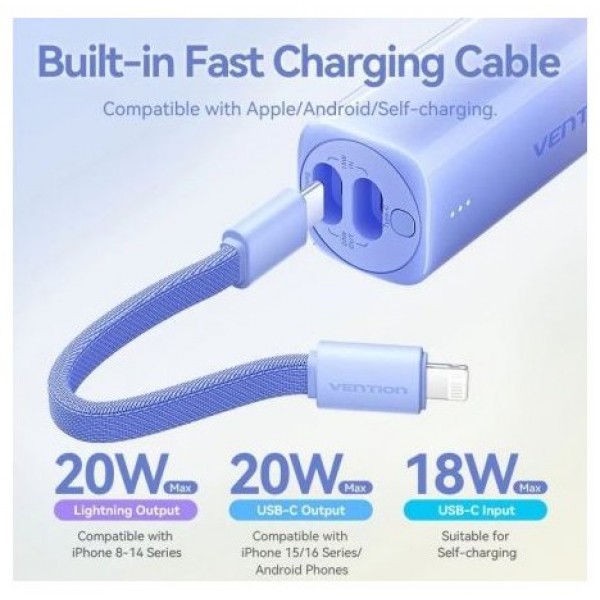 Manténgase cargado con estilo con el Vention Gradient Pocket Recharge , un banco de energía compacto y elegante diseñado para mantener sus dispositivos cargados durante todo el día. Este banco de energía, que combina una estética vibrante con tecnología de vanguardia, es su compañero perfecto para cargar su dispositivo mientras viaja.