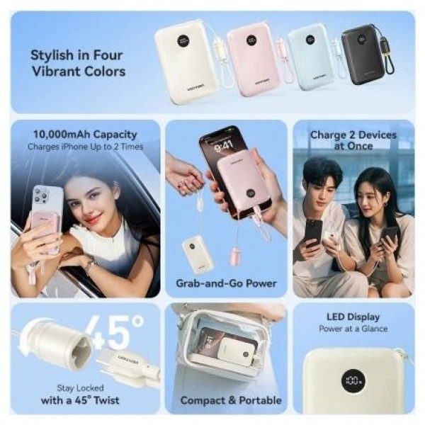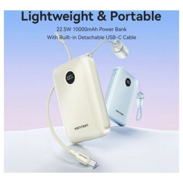 Powerbank 4800mAh Vention FHRW0/ 22.5W/ BlancaPowerbank 4.800mAh Vention FHRW0 Capacidad de 4.800 mAh Diseño ultraportátil y de tamaño mini Cables tipo C y Lightning integrados Carga hasta 2 d..