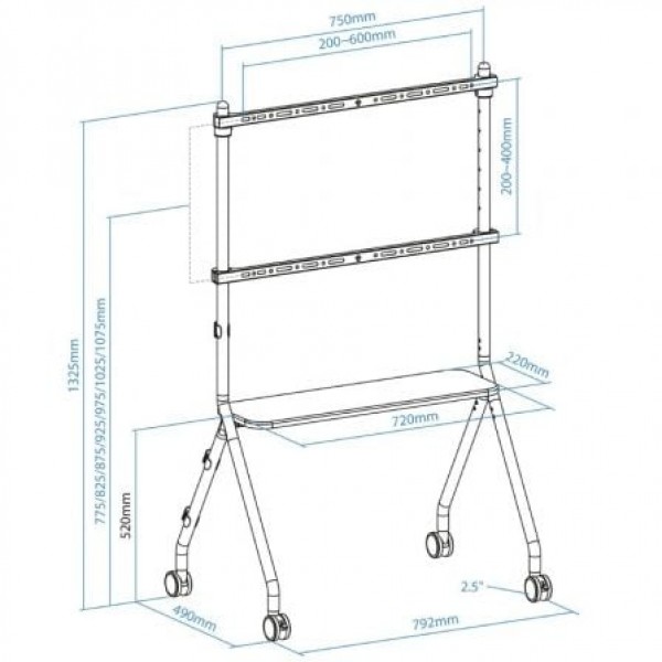 Rango de ajuste de altura del soporte: 775/825/875/925/975/1025/1075 mm