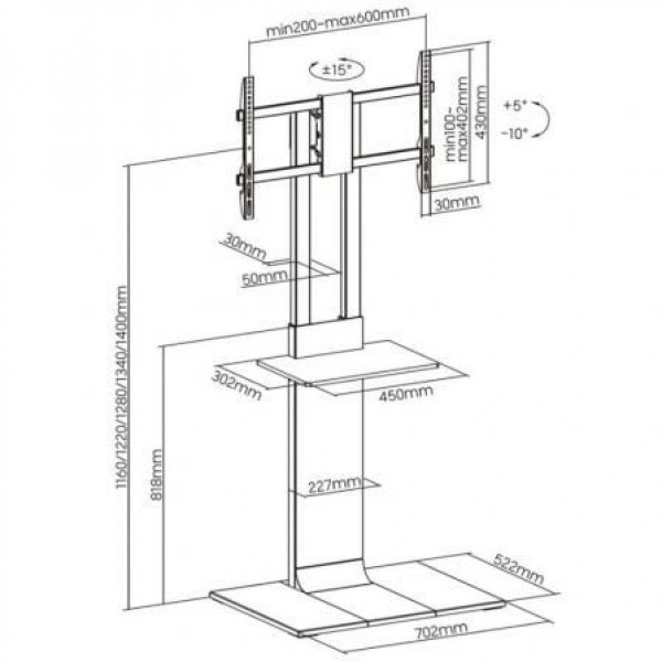 - Ajustes de altura del TV: 1160 / 1220 / 1280 / 1340 / 1400 mm