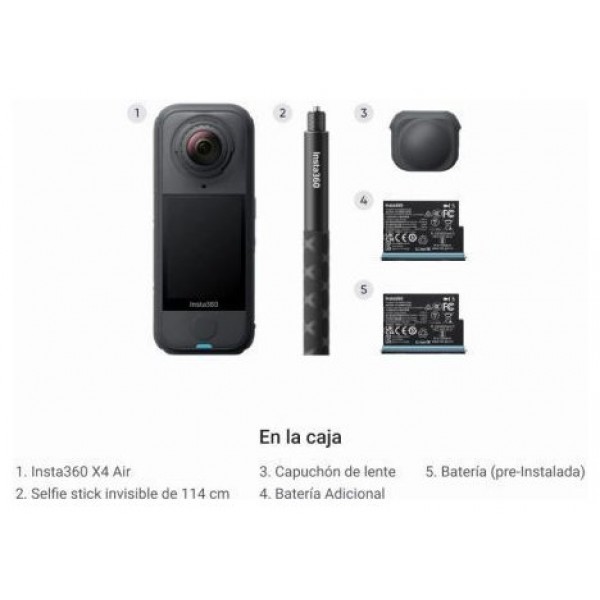 Cámara Digital Deportiva Insta360 X4 Air Pack Estándar/ 8K/ Ángulo de visión 360º/ NegraLIGERA Y PORTABLETAN LIGERA COMO EL AIREUna elegante cámara de 165 g rebosante de potencial. Ultraligera, fácil ..