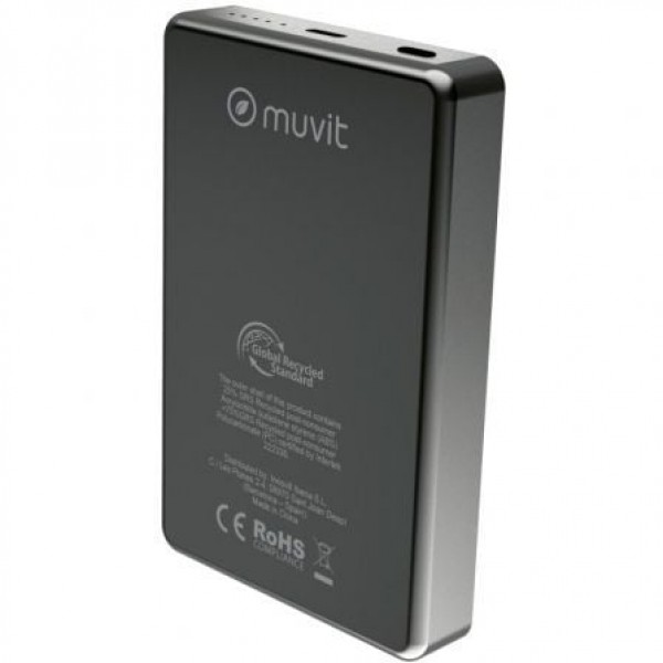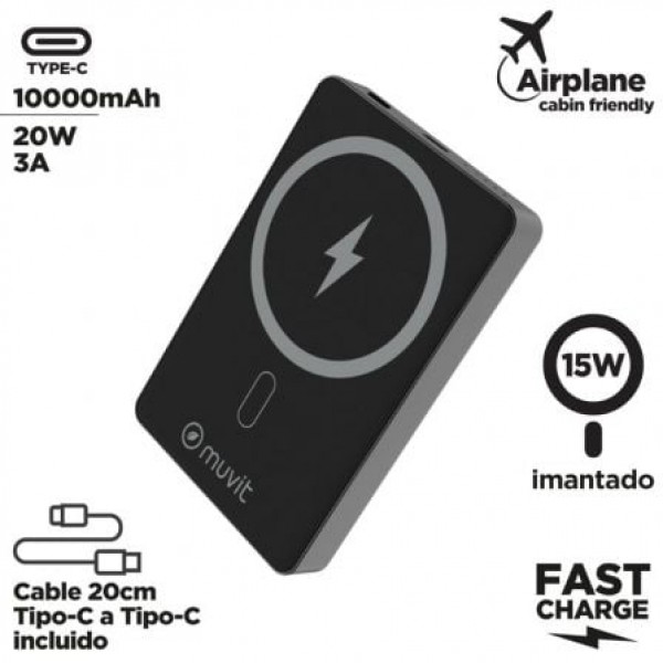 Muvit for change power bank Aluminio 10000mAh Magsafe 15W + conector Tipo C PD20W negro