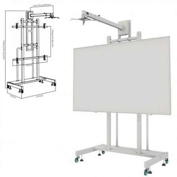 El APPIBSTD es un soporte móvil para pizarra interactiva de 80 a 120 pulgadas, con soporte para montaje de proyectores de corta distancia.