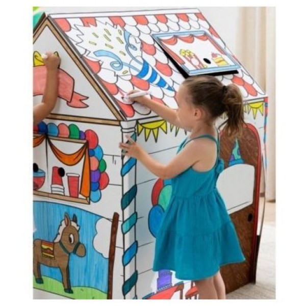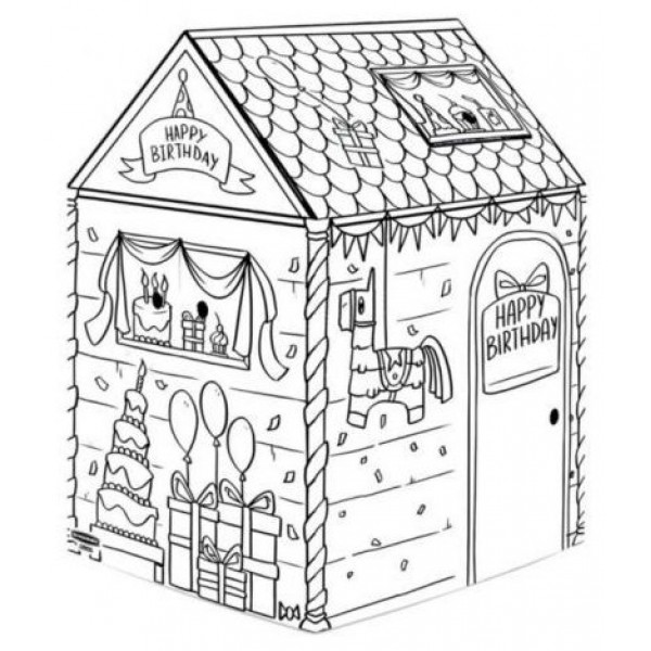 Casa "Cumpleaños" para pintar, fabricada en cartón ondulado