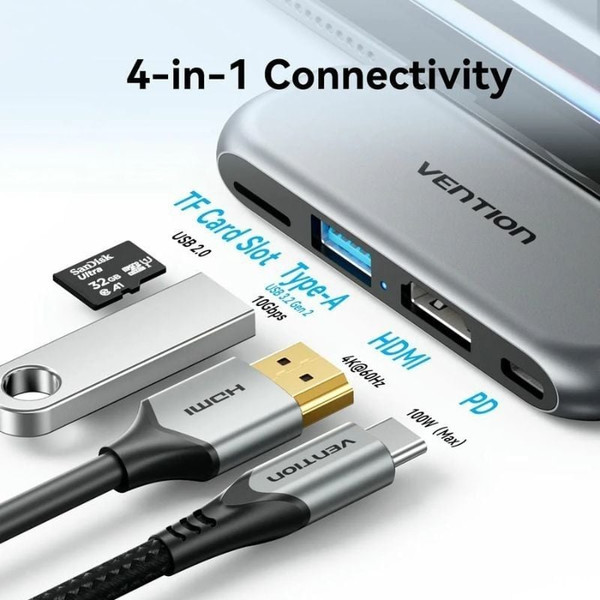 Docking USB Tipo-C Vention TQHHB/ 1xHDMI 4K/ 3xUSB/ 1xUSB Tipo-C PD/ 1xRJ45/ GrisVention Estación de acoplamiento USB-C 6 en 1 Red Gigabit Salida de pantalla HD 4K Velocidad de transferenc..
