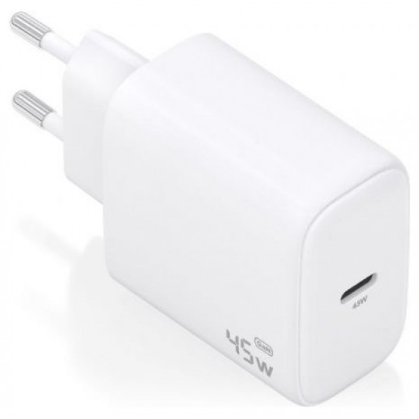 Cargador GaN USB-C 45W para cargar portátiles, móviles, cámaras y tablets etc. Diseño muy elegante, moderno y práctico.