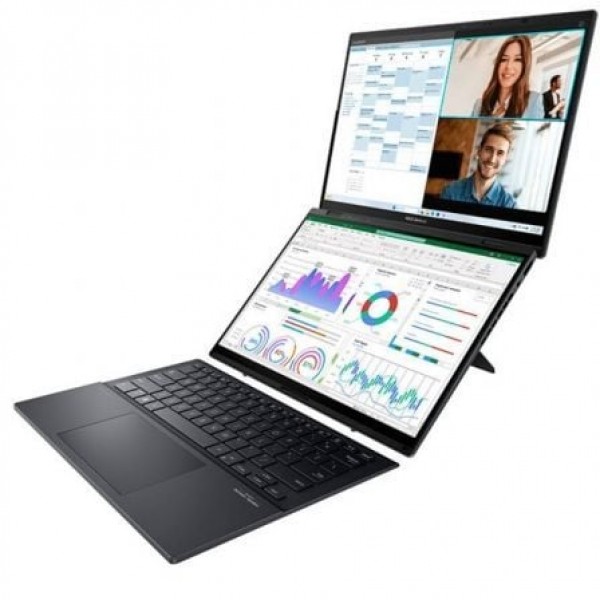 Dobla tu apuestaEl ASUS Zenbook DUO es un portátil revolucionario de pantalla doble. Este increíble ordenador, que personifica la innovación CES 2024, incorpora dos pantallas táctiles OLED de tamaño completo1, teclado desmontable de tamaño completo y soporte integrado. Es el portátil definitivo que combina a la perfección la versatilidad de la multitarea con una excelente movilidad. Con estas las dos pantallas táctiles OLED 3K de 14 pulgadas a 120 Hz, puedes ampliar al instante tu espacio de trabajo hasta 19,8 pulgadas. El ASUS Zenbook DUO cuenta con un procesador Intel® Core? Ultra 9 potenciado por IA y memoria LPDDR5x de 32 GB. Además, viene equipado con SSD PCIe® 4.0 de hasta 2 TB. Es un portátil que te garantiza un rendimiento excepcional en todo momento para que puedas con todo. Incorpora software inteligente dedicado, control intuitivo por gestos y una batería de 75 Wh de duración mejorada. Todo ello convierte al Zenbook DUO en un portátil ASUS fácil de usar que maximiza la productividad sin complicaciones. Vamos, ¡dobla tu apuesta!