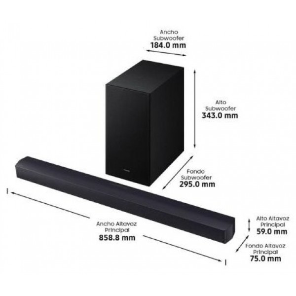 - Dimensiones barra de sonido: 858.8 × 59 × 75 mm