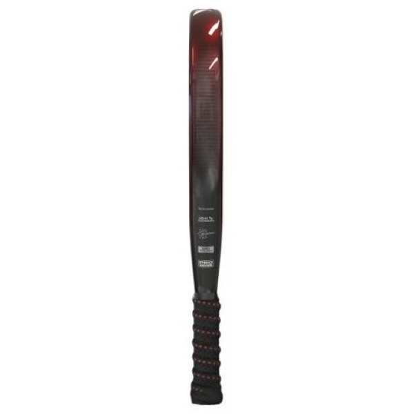 Está construida con carbono 18K Textreme en las caras, un material de alta rigidez que potencia los golpes ofensivos sin perder precisión. El marco de carbono 3K aporta consistencia y durabilidad, mientras que el núcleo de goma EVA garantiza un buen tacto y amortiguación. El acabado brillante le confiere una estética profesional, y el sistema Dual Pro Grip junto al cordón reemplazable mejora la ergonomía y reduce las vibraciones.