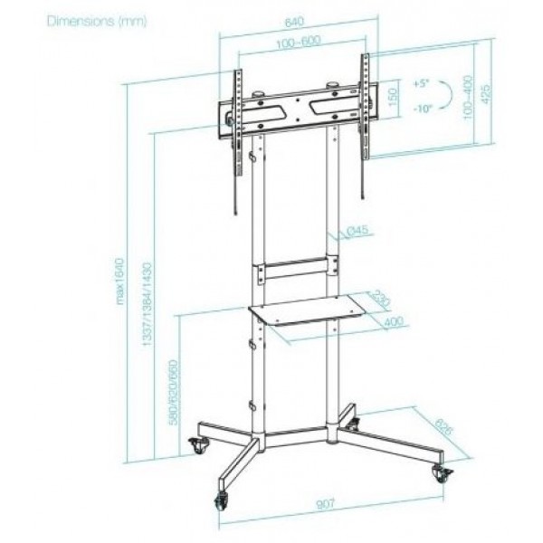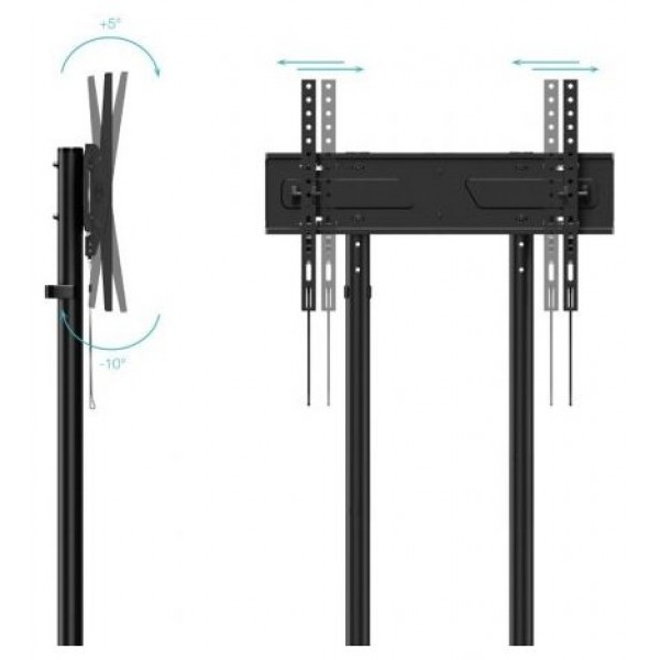 Soporte de Suelo Inclinable con Ruedas TooQ FS20406HM-B para TV de 60-100"/ hasta 120kgFS20406HM-B“AQUILES” Soporte de Suelo con Ruedas con Regulación de Altura para Pantallas 60"-100", NegroEspecific..