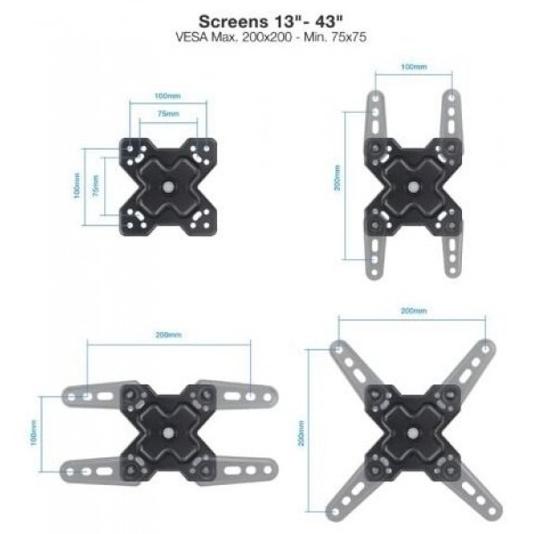 Compatible con VESA: 75x75, 100x100, 100x200, 200x100, 200x200