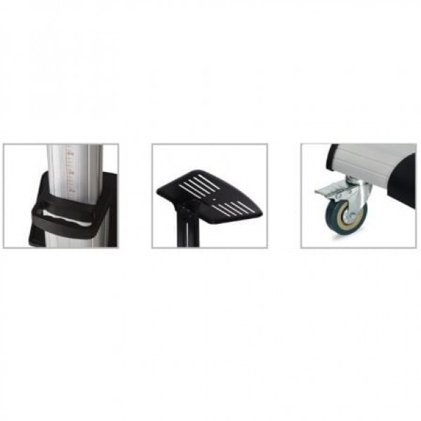 - Ruedas con freno que permiten fijar el soporte al suelo, evitando desplazamientos no deseados.