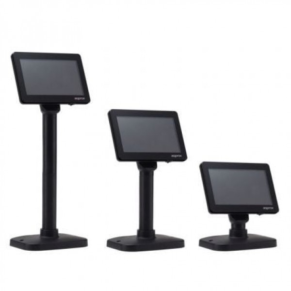 Convierte tu visor de cliente en una potente herramienta de marketing.. Gracias al panel LCD extra brillante (450nits), podrás utilizar el visor para informar del proceso de compra, y a su vez usarlo como una potente herramienta de marketing ya que permite desplegar mensajes multimedia, imágenes.... Es ideal para comercios e instalaciones industriales o para visionar publicidad en líneas de caja. Ofrece una alta calidad en la presentación de la información al cliente gracias a su pantalla plana LCD de 7 pulgadas.. Otra de las utilidades del visor appVFD02LCD es como segundo monitor en el punto de venta, ofreciendo información extra al operador.. Cuenta con varias configuraciones de altura y el panel puede inclinarse, lo que le permite una perfecta integración dentro del conjunto de elementos que configuren su POS.. Especificaciones:. • Tamaño de pantalla: 7 pulgadas. • Resolución: 800 x 480. • Tipo de panel: Alto brillo TFT-LCD. • Retroiluminación: LED. • Luminancia: 450Nite. • Tiempo de respuesta: 25ms.. • ángulo de visión: 350º (horizontal), 60º (vertical). INTERFAZ. • USB2.0 / USB3.0. GENERALES. • Fuente de alimentación: Sólo USB 5V. • área de visión: 154 (H) x 86 (V) mm. (16:9)• Dimensiones: 368x293x53mm. • Temperatura de funcionamiento: -20ºC / -45ºC. • Tiempo medio de vida: 50.000 horas. • Dimensiones: 169,5 x (Altura variable de 332 a 453) x 98,5 mm.. • Peso: 1112g.. • Color: Negro. • Incluye: Cable USB